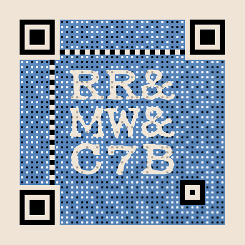 Um ein ästhetisch ansprechendes Ergebnis zu erzielen und gleichzeitig auch die Signatur mit freiem Auge lesbar zu machen, haben wir einen ästhetischen QR-Code gestaltet, der sich deutlich vom Schachbrettmuster klassischer QR-Codes unterscheidet (s. Abbildung 7). Zur Erstellung eines solchen QR-Codes kommen eine Reihe weiterer Techniken zum Einsatz, die sich unter anderem die im QR-Code-Standard definierte Fehlertoleranz zunutze machen um die Scanbarkeit zu gewährleisten. Hier ins Detail zu gehen, würde den Rahmen sprengen, wir verweisen auf die freundliche Unterstützung der Designer von LemioCode bei der Erstellung. Das Design selbst besteht aus den Initialen der KI-Entwickler, in einem Quadrat arrangiert, und greift das quadratische Format sowohl des QR-Codes als auch des gesamten Porträts nochmals auf.