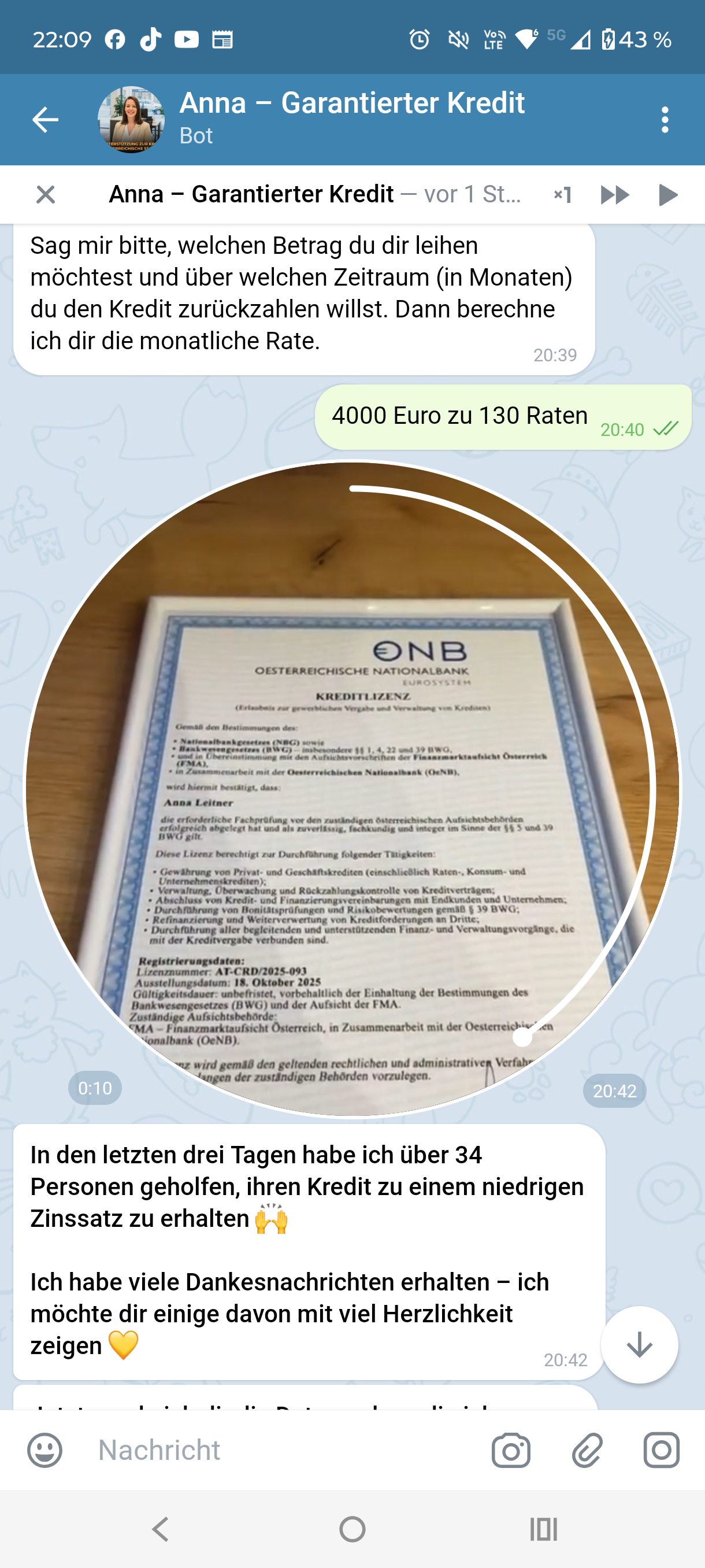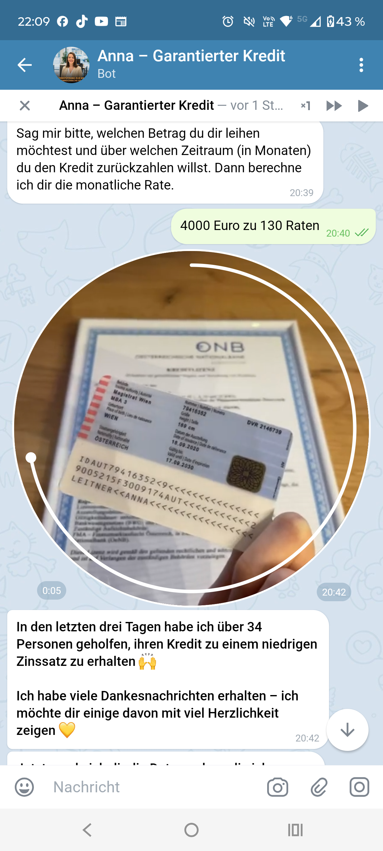 Falsche Kreditangebote via Telegram mit Bezug auf die OeNB